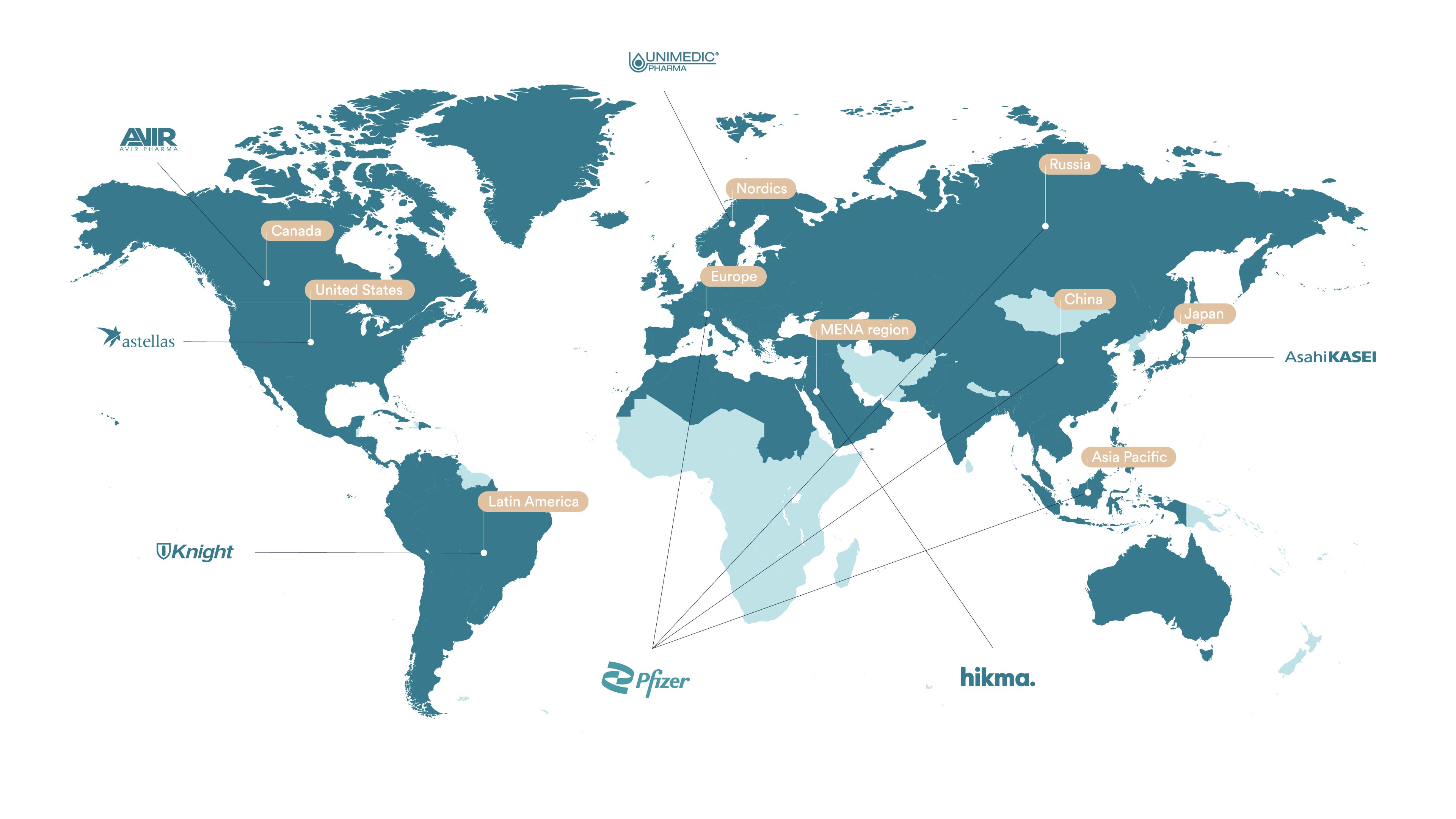 We have established license and distribution agreements for ceftobiprole with several partners covering more than 80 countries. This includes Innoviva Specialty Therapeutics for the United States, Advanz for Europe (excluding the Nordic countries, where Unimedic is our distribution partner), as well as strong regional partners for Latin America (Knight), the MENA region (Hikma), China (CR Gosun), Canada (Avir) and Eurasian countries (JSC Lancet).